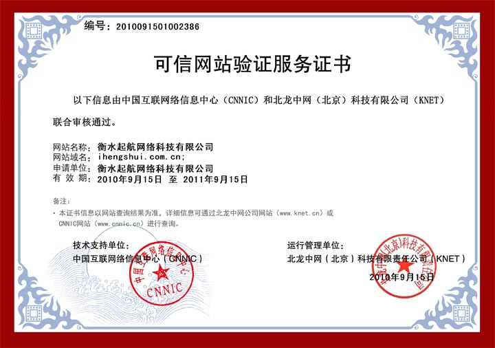 熱烈慶祝衡水起航網(wǎng)絡(luò)科技有限公司順利通過CNNIC可信網(wǎng)站驗(yàn)證!